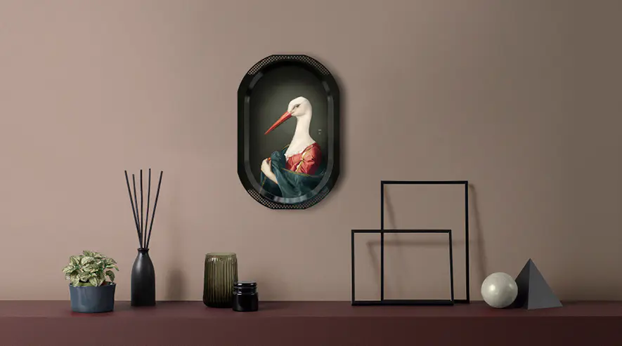 Grands plateaux à utiliser pour le service, puis à exposer librement au mur comme une œuvre picturale, une peinture mythologique.